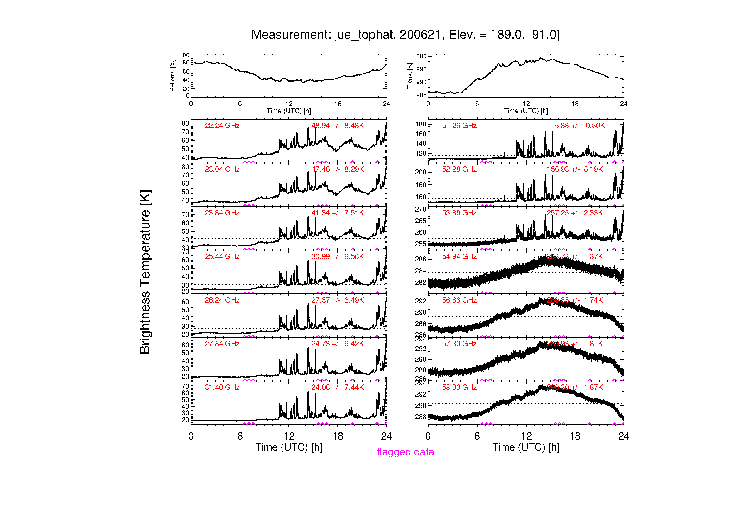 - Automatic rain detection (data are flagged in case of rain detected by rain sensor)