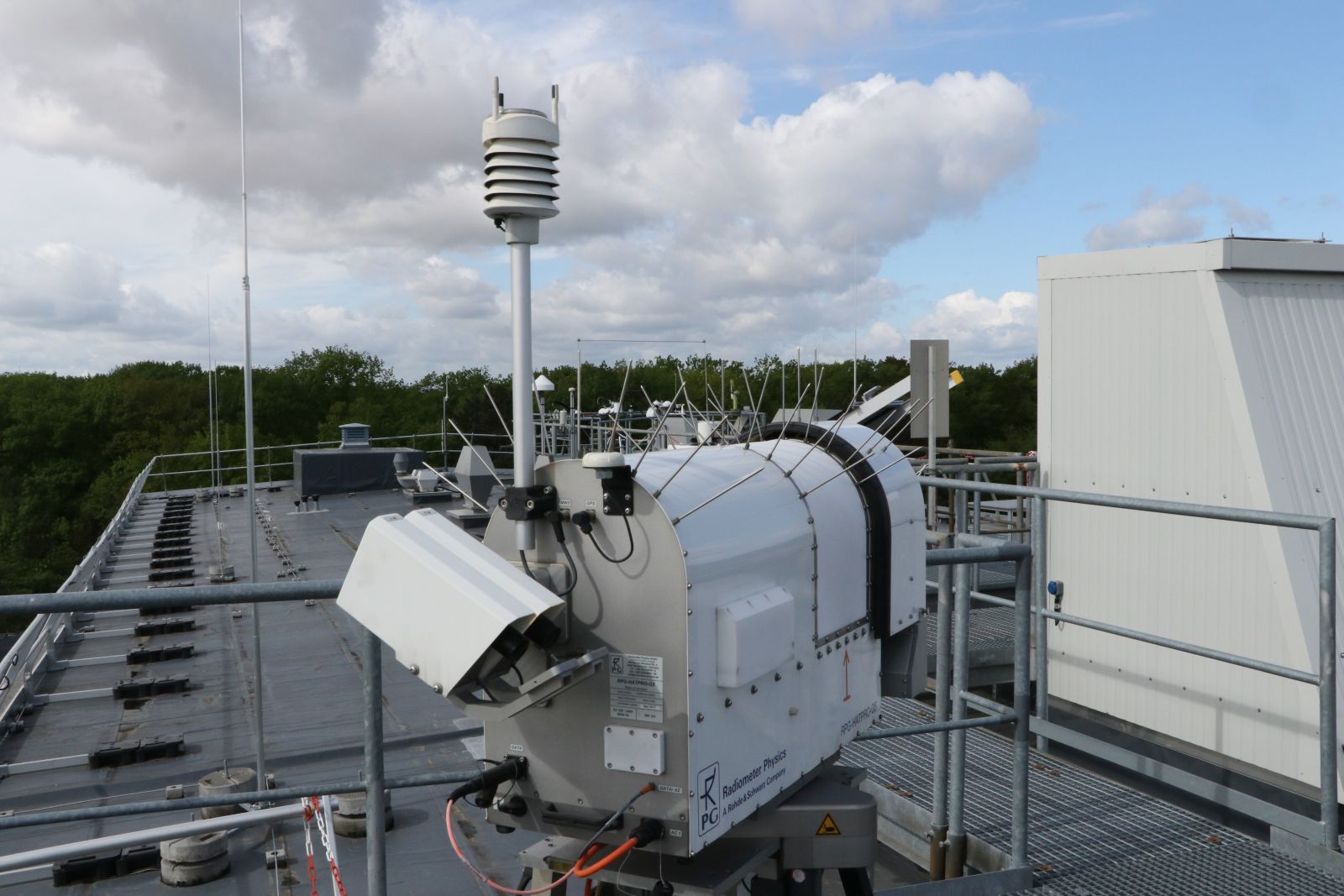 HATPRO-TOPHAT installed at Jülich with two IR Pyrometers and the automatic weather station in front