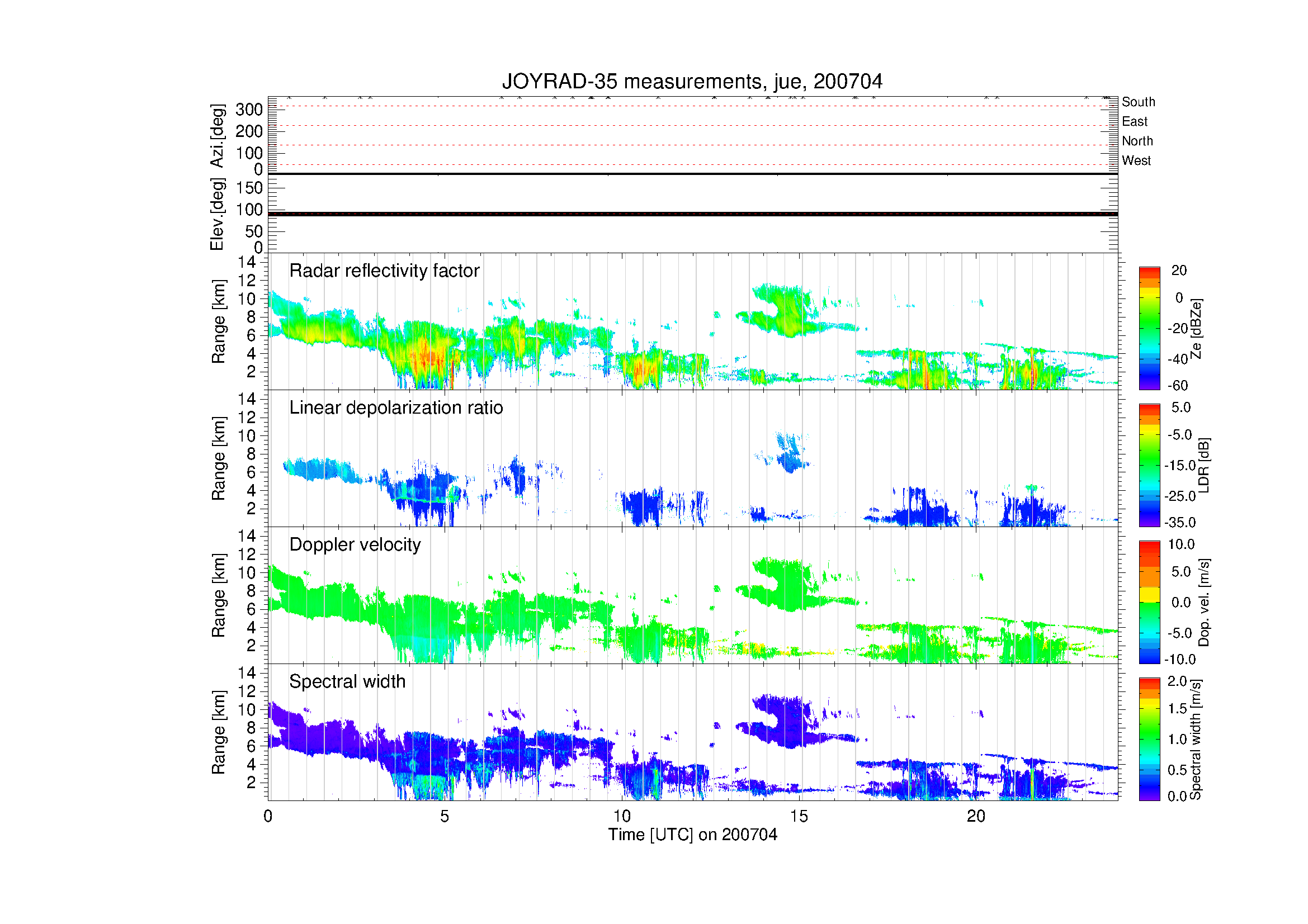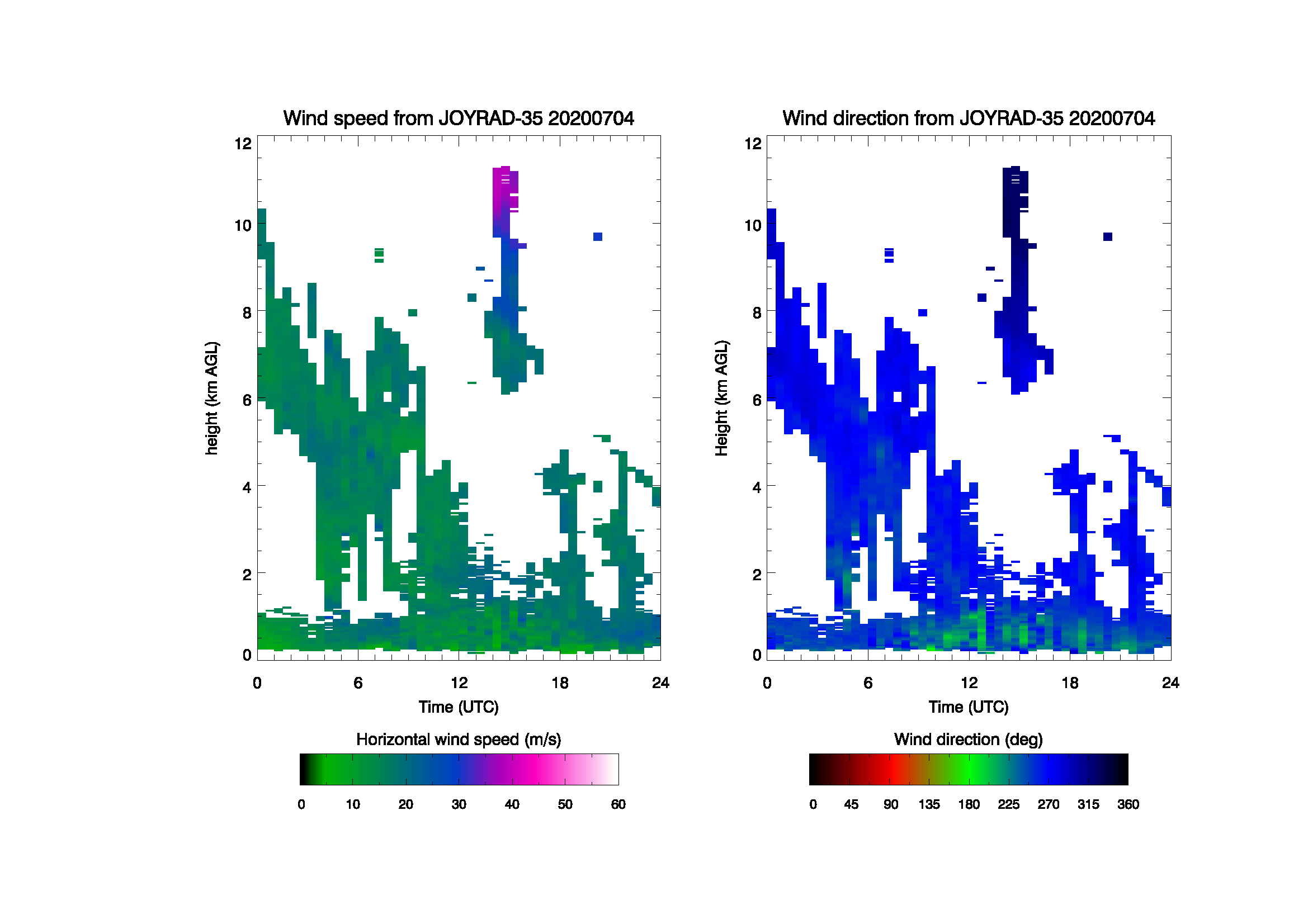| Profiles of horizontal wind | 30 minutes | 1 file per day (30-50 MB) | YYYYMMDD_joyrad35_wind_profile.nc | |