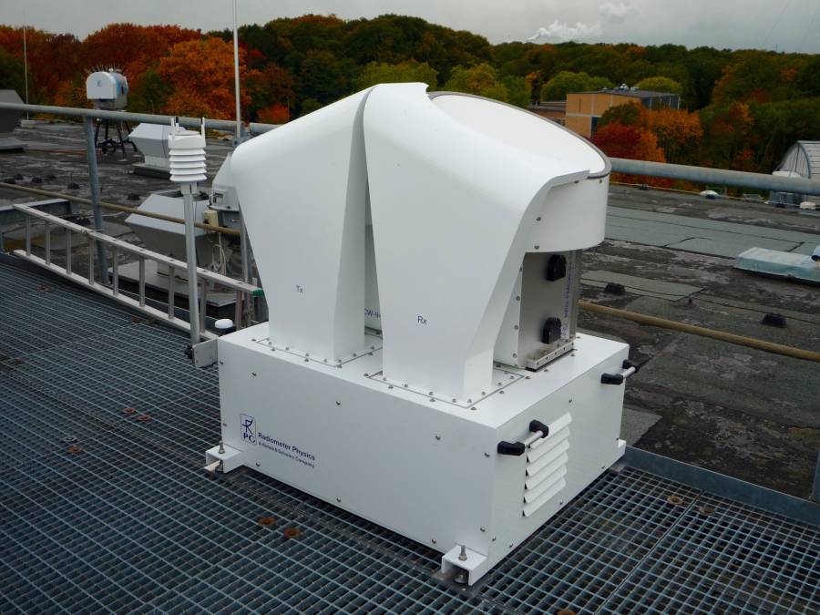 The W-Band cloud radar is a Frequency Modulated Continuous Wave (FMCW) Radar that transmits saw tooth frequency chirps at 94 GHz. In this way, vertical profiles of reflectivity, Doppler velocity, Doppler spectral width are detected from 150 m to 10 km above ground. Given these measurements, information on the macrophysical (cloud boundaries, type of cloud particles) and microphysical (e.g., liquid and ice water content) properties of the detected cloud can be derived. The radar is operated in a vertically pointing mode. Additionally, the system is equipped with a passive radiometric channel at 89 GHz that is sensible to cloud liquid water. Passive and active receivers are fed by the same antenna, i.e. a perfect beam overlap is accomplished.